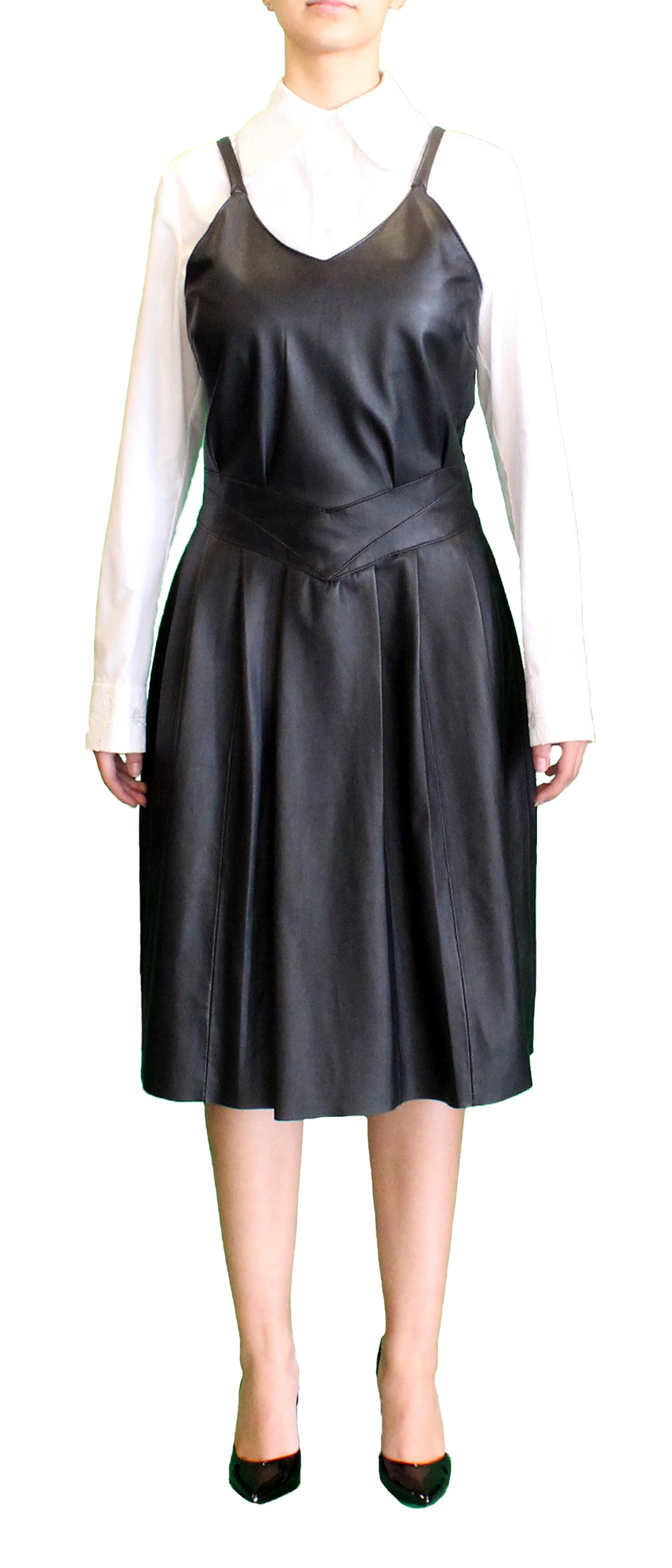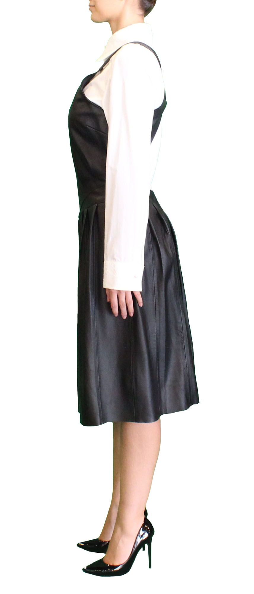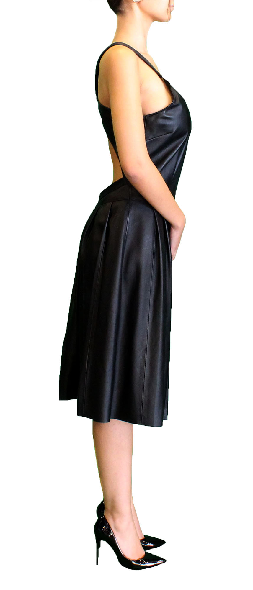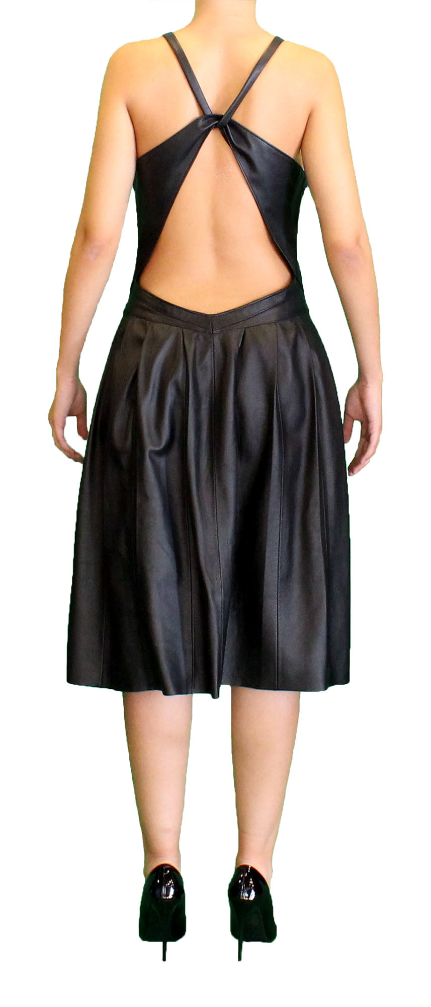 Vestido preto em pele, dos-nu.