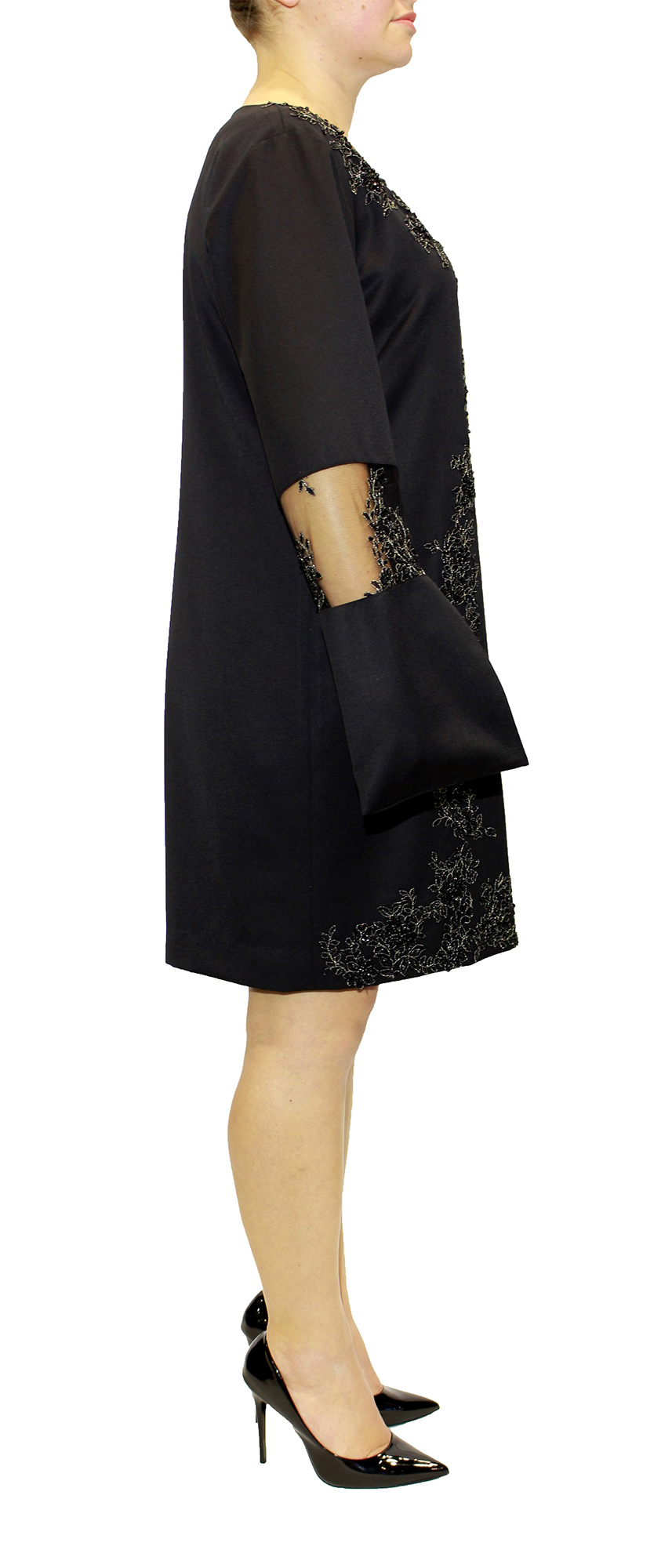 Vestido preto com bordados cozidos á mão.